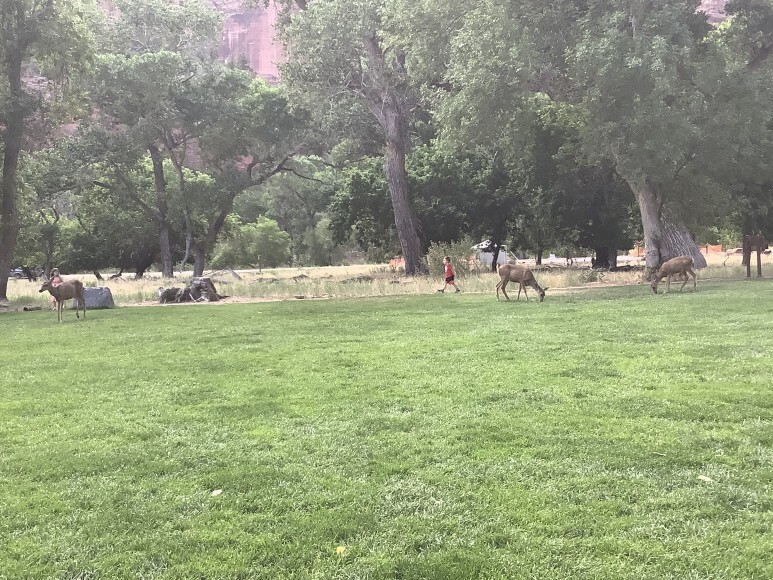 랏지 앞에는 사슴들이 돌아다닙니다.