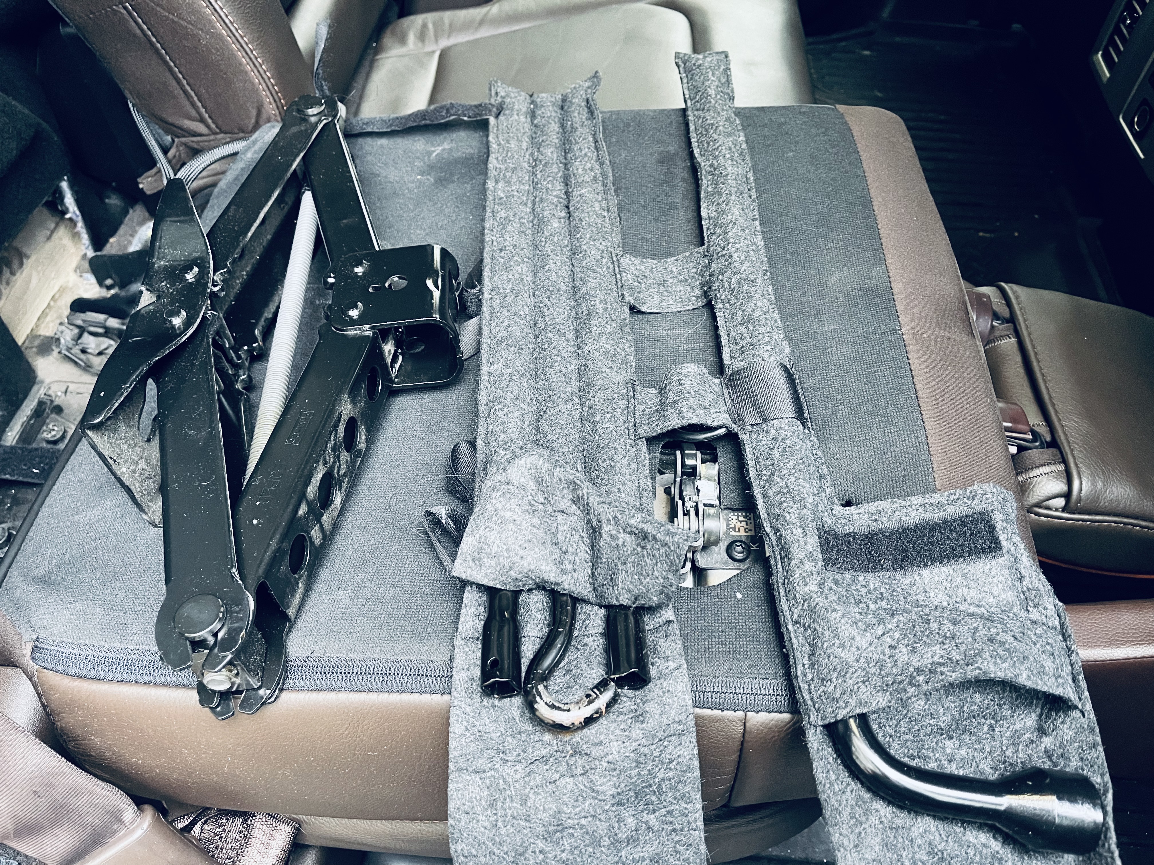 포드의 스패어타이어 교체용 Jack을 비롯한 공구들입니다. 조수석 측 뒷좌석 시트 뒷편에 마련되어 있습니다.
