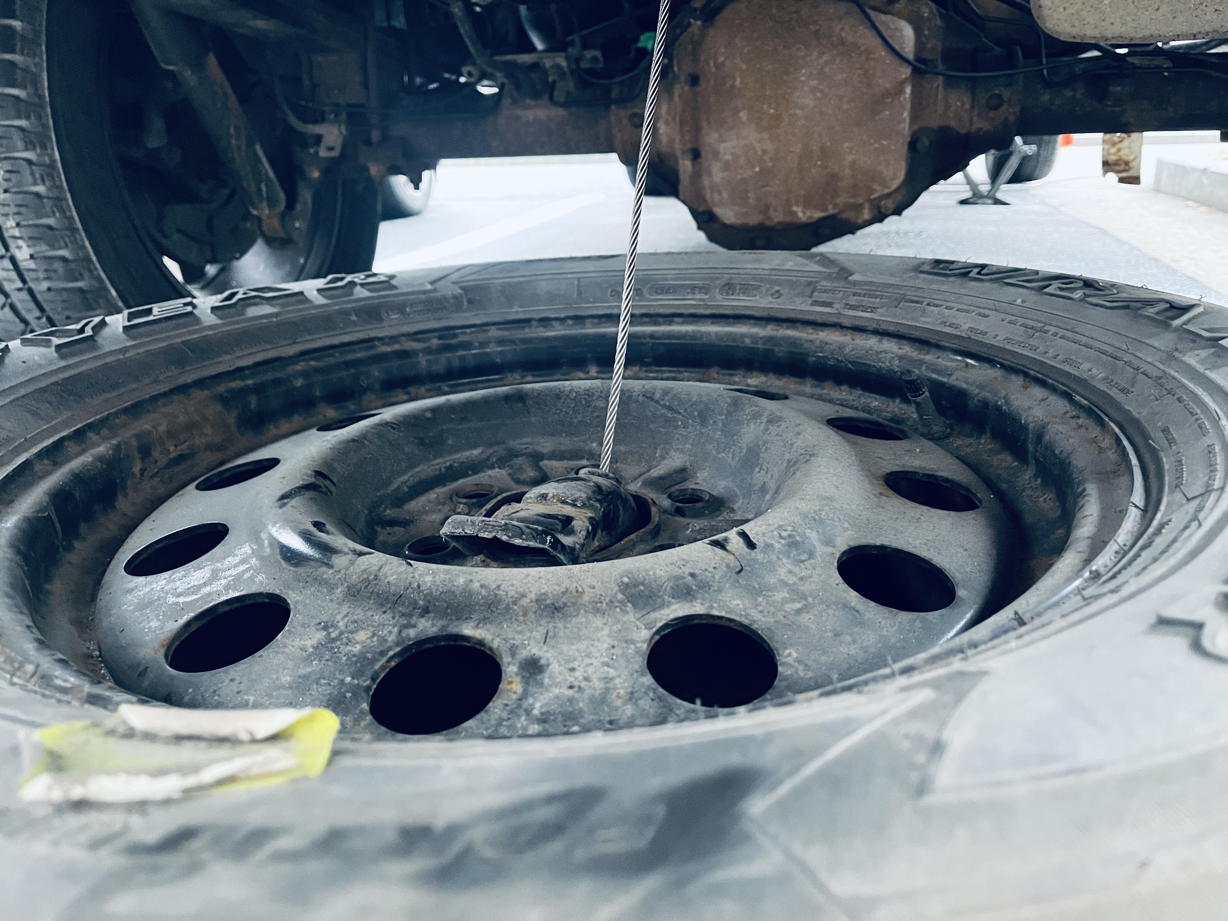 당시 구입할 때 타이어 보증은 60개월, 즉 5년입니다. 2020년 6월부터 2025년 6월까지 보증이 되는 상황입니다. 따라서 일단 (1) 스패어 타이어를 설치하고 (2) 펑크난 0520타이어는 분리하여 적재함에 옮기고 (3) 새로운 스패어 타이어를 구입해 스패어타이어로 보관할 생각입니다.