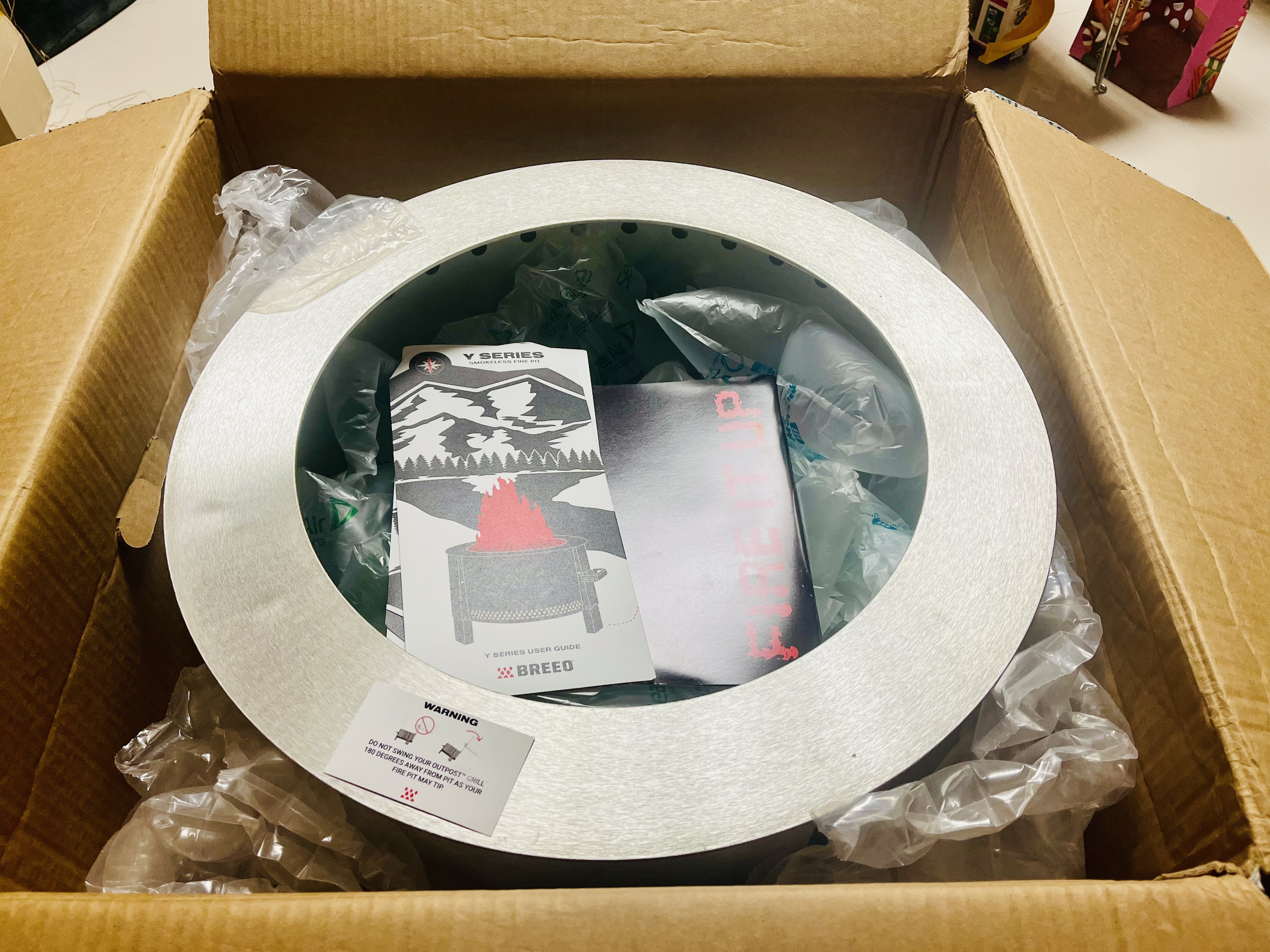 지난 블랙프라이데이에 구입했던 화로대가 크리스마스 때 개봉된 이래, 그간 덥개 및 커버, 그리고 측면 막대 등이 갖추어졌습니다.