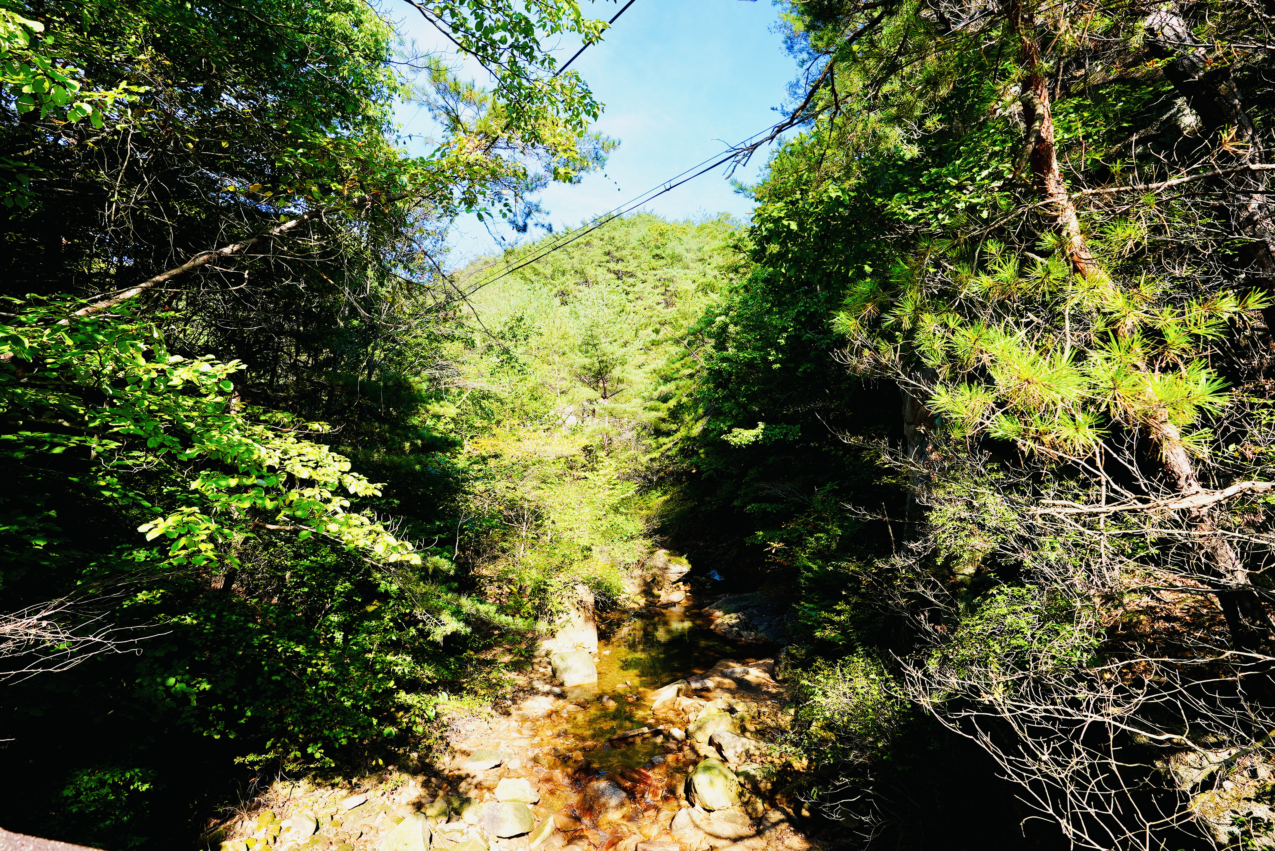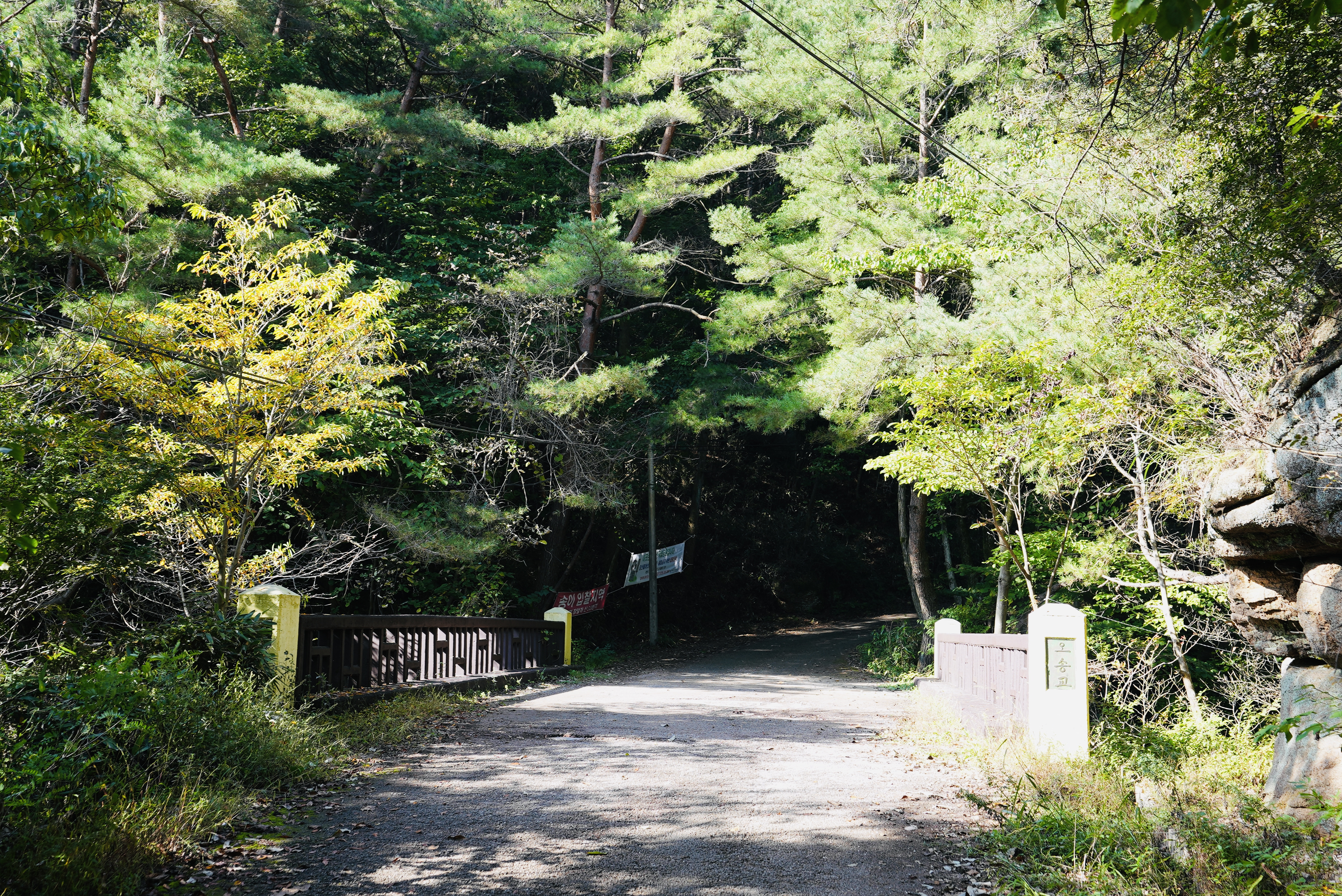 다리에서 산너머를 보내 내려오는 계곡물이 맑습니다.