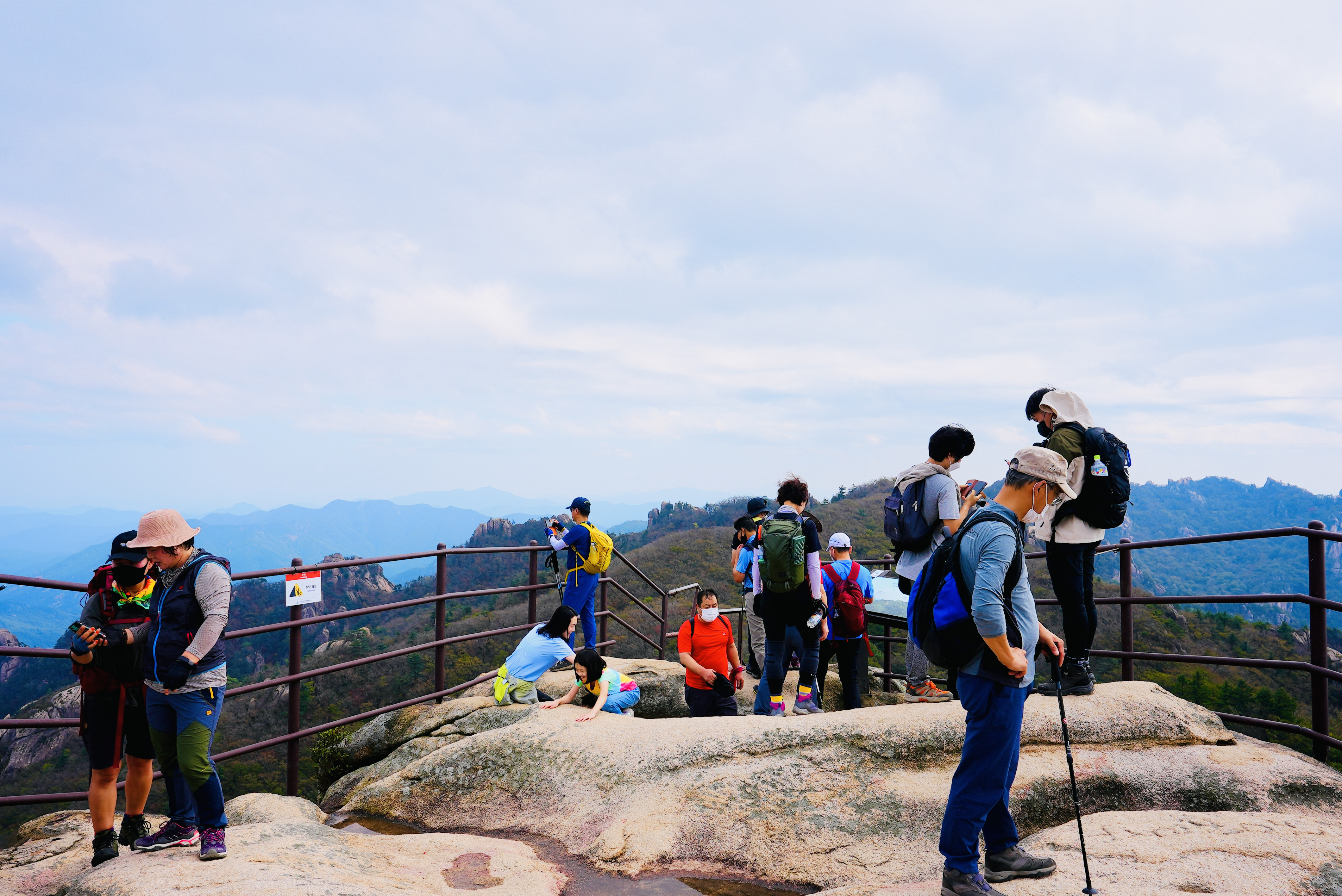 문장대에 오르니 역시 사람이 많네요. 시간을 내어 인생 사진을 얻은 후, 하산하였습니다.