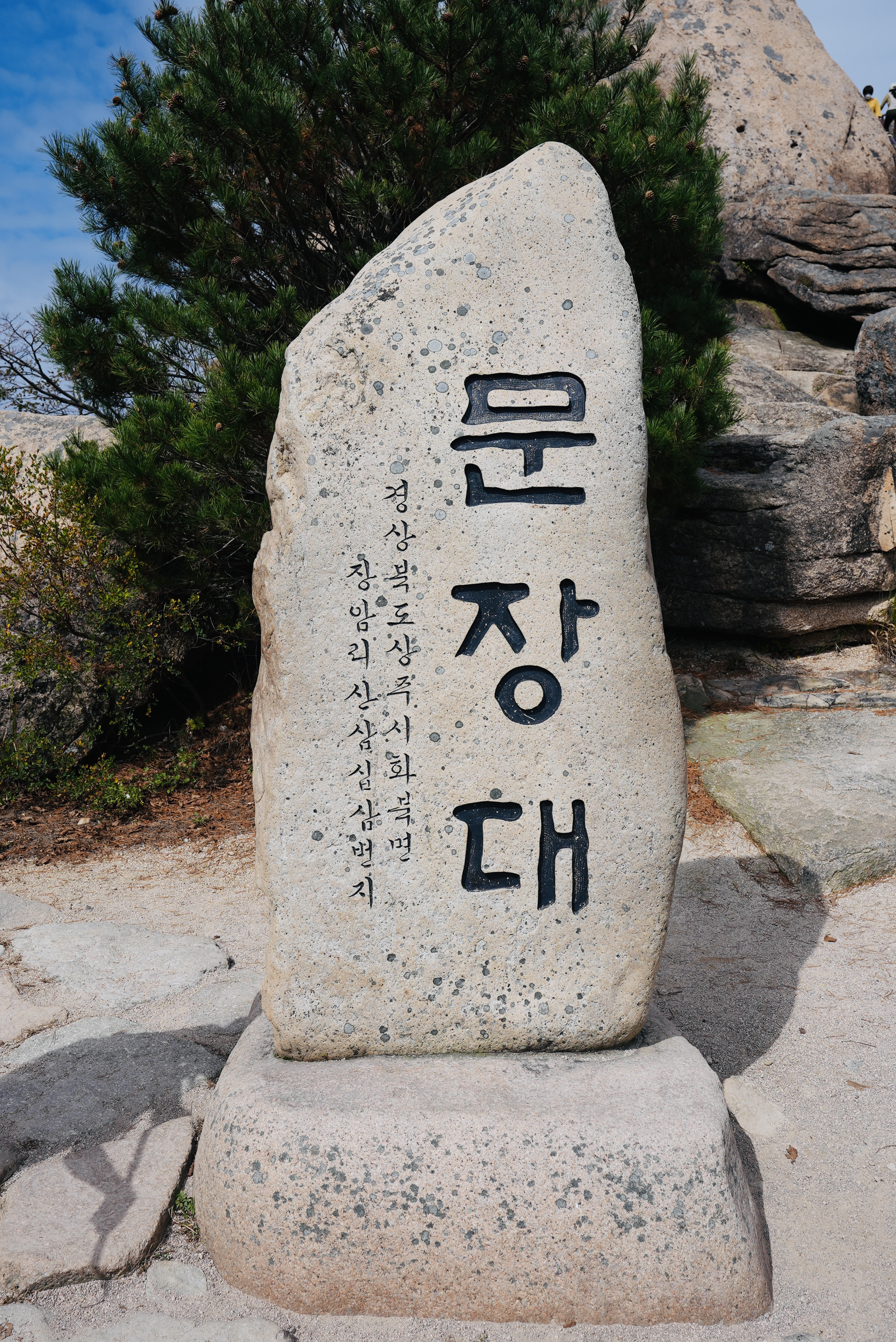 사거리에서 200미터 정도 더 오르면 문장대 표지가 나타납니다. 위는 구 표지석. 아래는 새 표지석.