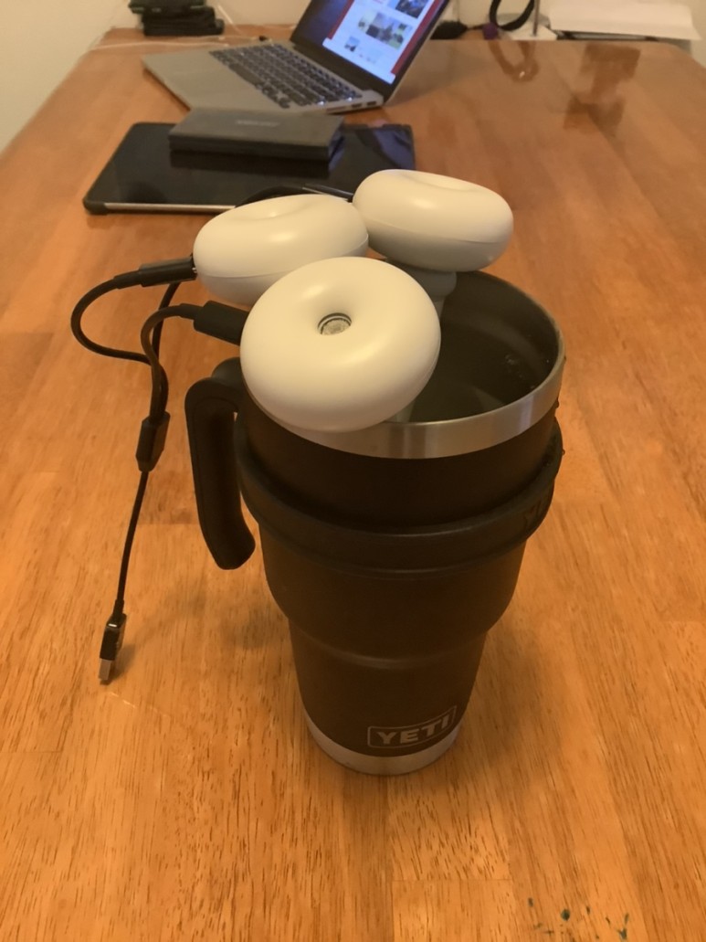 미국에서 건조하던 서부 사막 지역을 누비고 다닐 때, 가습기 스틱을 사용했었습니다. 가습기 스틱 3개를 예티 머그에 꽂고 그 건조하던 사막 기후를 촉촉하게 다닐 수 있었습니다.